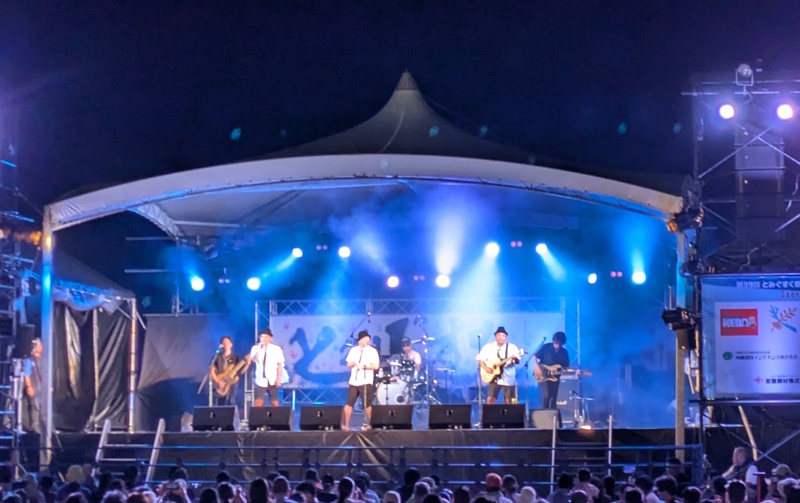 とみぐすく祭り 日々のこと X Facebook はてブ LINE コピー 2025.10.20 昨日は、とみぐすく祭りの2日目でしたが、昼間は時々激しい雨が降りスペシャルライブが中止になるのではと心配しましたが、夕方から雨が止み無事開催されたので、行って来ました。 スペシャルライブでは、 サザンバンド沖縄、きいやま商店、かりゆし58 といった豪華ゲストの熱いパフォーマンスで、大変な盛り上がりでした。 サザンバンド沖縄 きいやま商店 かりゆし58 そういえば、かりゆし58は豊見城市の観光大使ですね。 ライブの後は花火で締めくくりました。 こんな素晴らしいライブを2時間も無料で楽しめるなんて最高です。