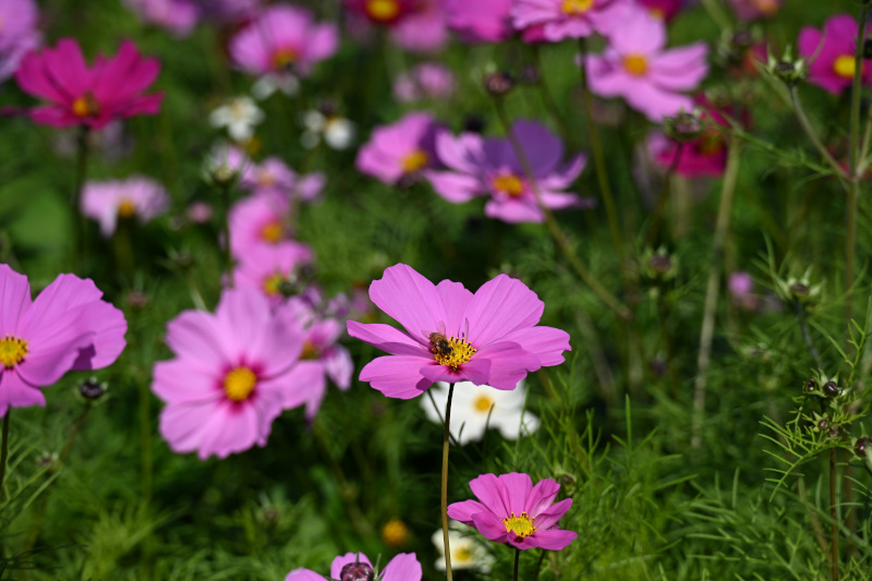 読谷村のコスモス畑 2026 日々のこと X Facebook はてブ LINE コピー 2026.02.19 今日の沖縄は快晴。 読谷村のコスモス畑に行って来ました。 今年もコスモスが綺麗に咲いており、丁度見頃でした。 色々な色のコスモスが咲き誇り心が和みます。 ミツバチが盛んに蜜を集めています。 ついでに、コスモス畑のすぐ近くで中日ドラゴンズが春季キャンプを行っているので覗いてみました。 熱心なファンが大勢見学していました。