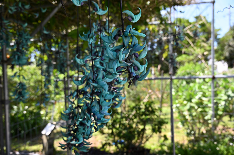 読谷村のヒスイカズラ 日々のこと X Facebook はてブ LINE コピー 2026.04.03 昨日の沖縄はひさびさの快晴だったので、ネットニュースで見た読谷村にヒスイカズラを見に行って来ました。 こちらのヒスイカズラは、読谷村の個人のお宅の玄関先に見事に咲いており、大勢の人が見学に来ていました。 もちろん、個人宅なのでマナーを守って静かに写真を撮らせていただく感じです。 ちなみに、この付近には他にも2箇所 ヒスイカズラが咲いている場所を見つけました。